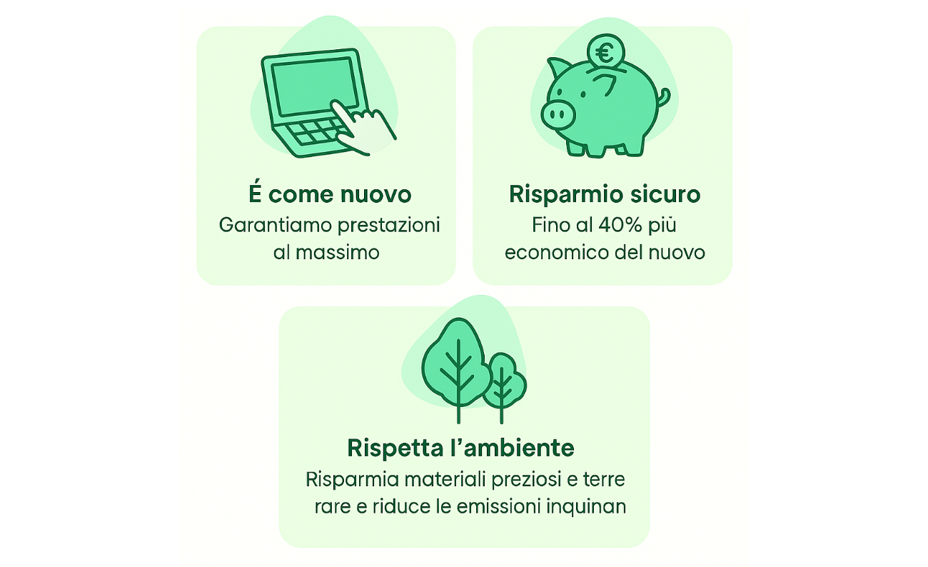 Con la confezione sigillata ottieni prodotti pari al nuovo, con prestazioni al massimo, un risparmio fino al 40% e un gesto concreto per l’ambiente.